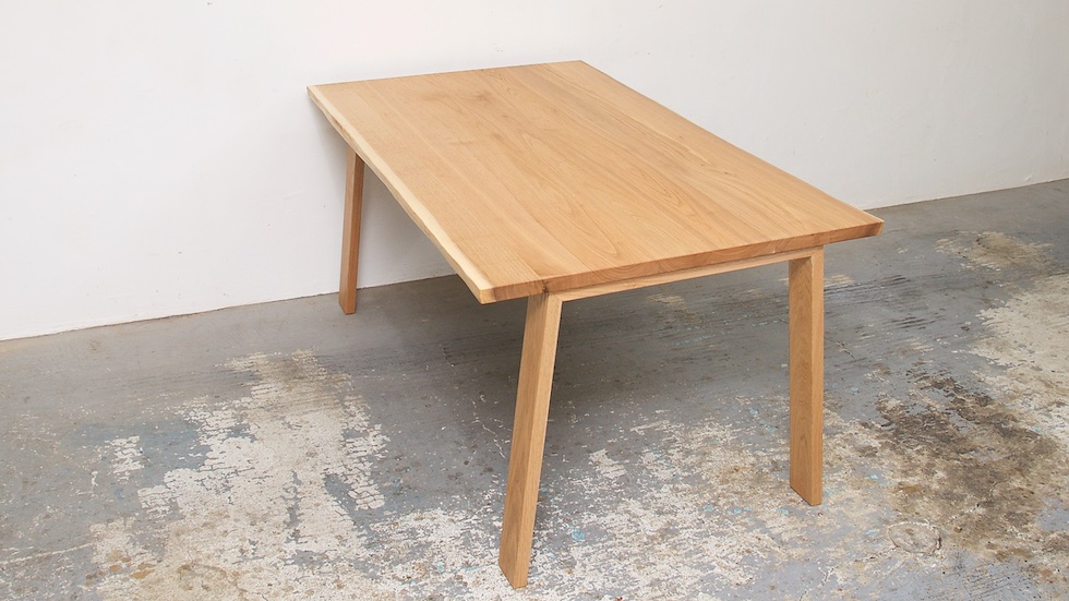 8030テーブル、8031テーブルどちらも耳つきテーブルです。耳つきテーブルというのはあまり馴染みのない言葉ですが、樹皮がついていた部分を残してテーブル天板が作られてます。なので、長い辺のエッジは自然が作り出した緩やかなカーブを描いています。真っ直ぐにカットされたテーブルよりも柔らかい印象になります。