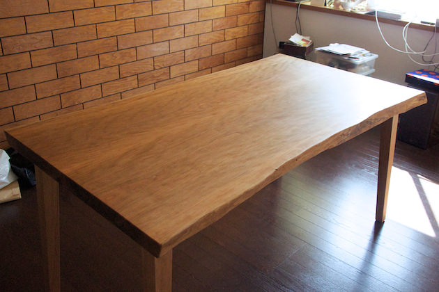 以前製作して納品させて頂いた山桜材の耳つきテーブルです。少しギラギラするような勇ましい木目のテーブルに仕上がりました。このテーブル天板はご注文頂く前に吉祥寺ショールームに展示していたのですが、興味を持って頂いたお客様も多く、サイズ違いの天板が出来るかといった問い合わせが結構ありました。
