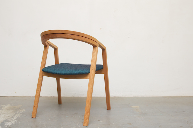 こちらは宮崎椅子製作所のribチェアです。ピンクっぽい色の布座面と合わせています。